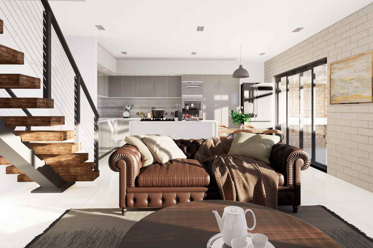 Open plan living with kitchen / lounge, patio