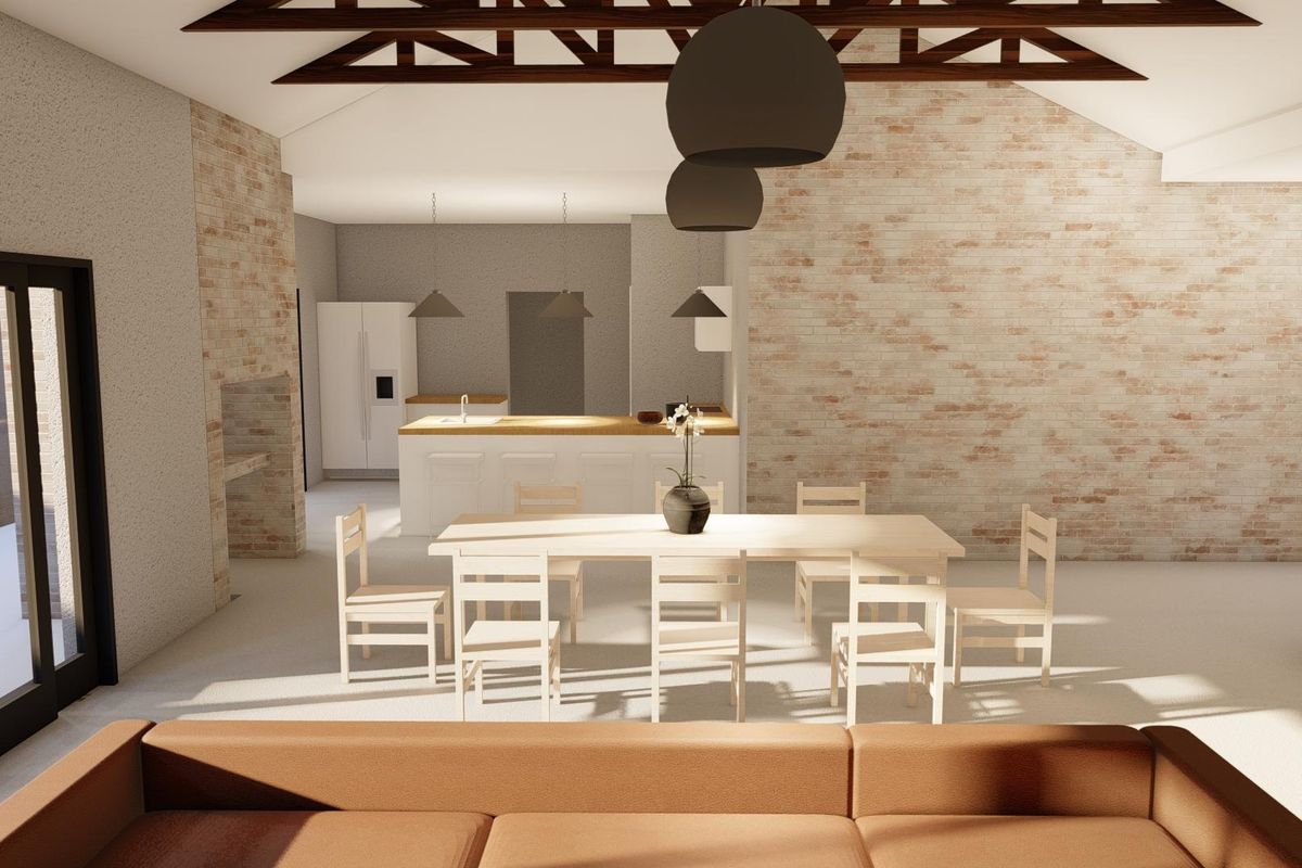 Soaring open trusses and high-end finishes frame seamless indoor-outdoor living with a wide veranda and garden in a serene neighbourhood — study, scullery, 3 beds, 3 baths, double garage.