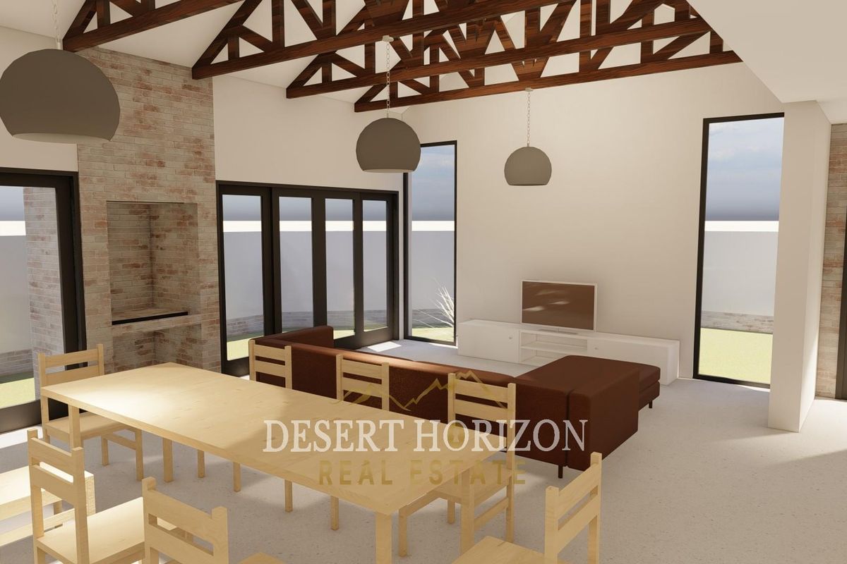 Embrace sunny, secure Kramersdorf living in Swakopmund with modern entertaining — inside braai area, open-plan kitchen, and three bedrooms with double garage.
