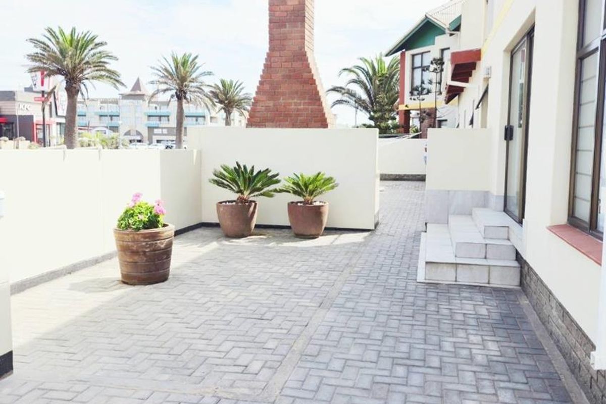 Enjoy urban coastal living and entrepreneurial opportunity in central Swakopmund, steps from shops and restaurants. Four-bedroom townhouse with approved business rights and private courtyard.