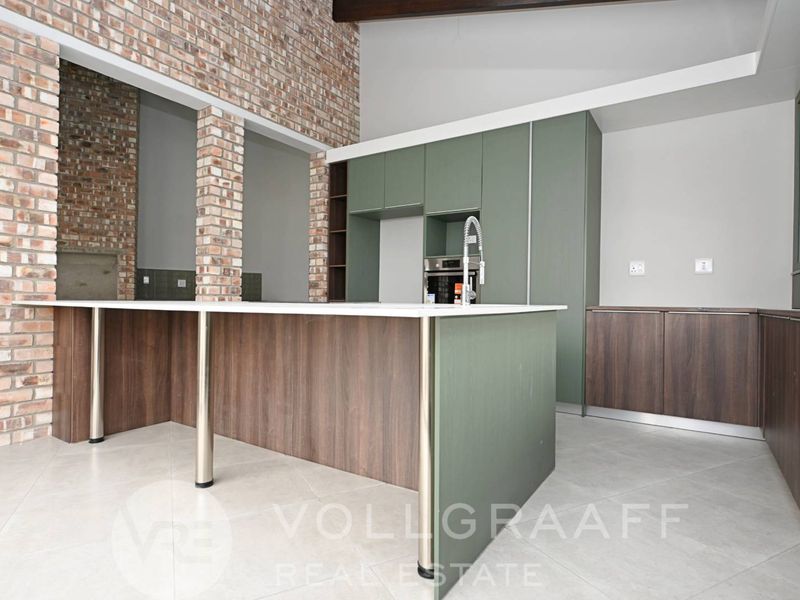 Entertainers' paradise in a secure, leafy neighbourhood — tiled patio with indoor braai and fire pit, modern kitchen and separate two‑bed flat. Five beds, four baths, triple garage.