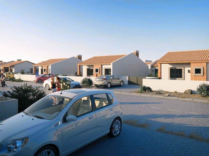 New development offers modern, affordable houses with solar geysers, indoor BBQ, and garage options. Prices range from N$900,000-N$1,365,000.