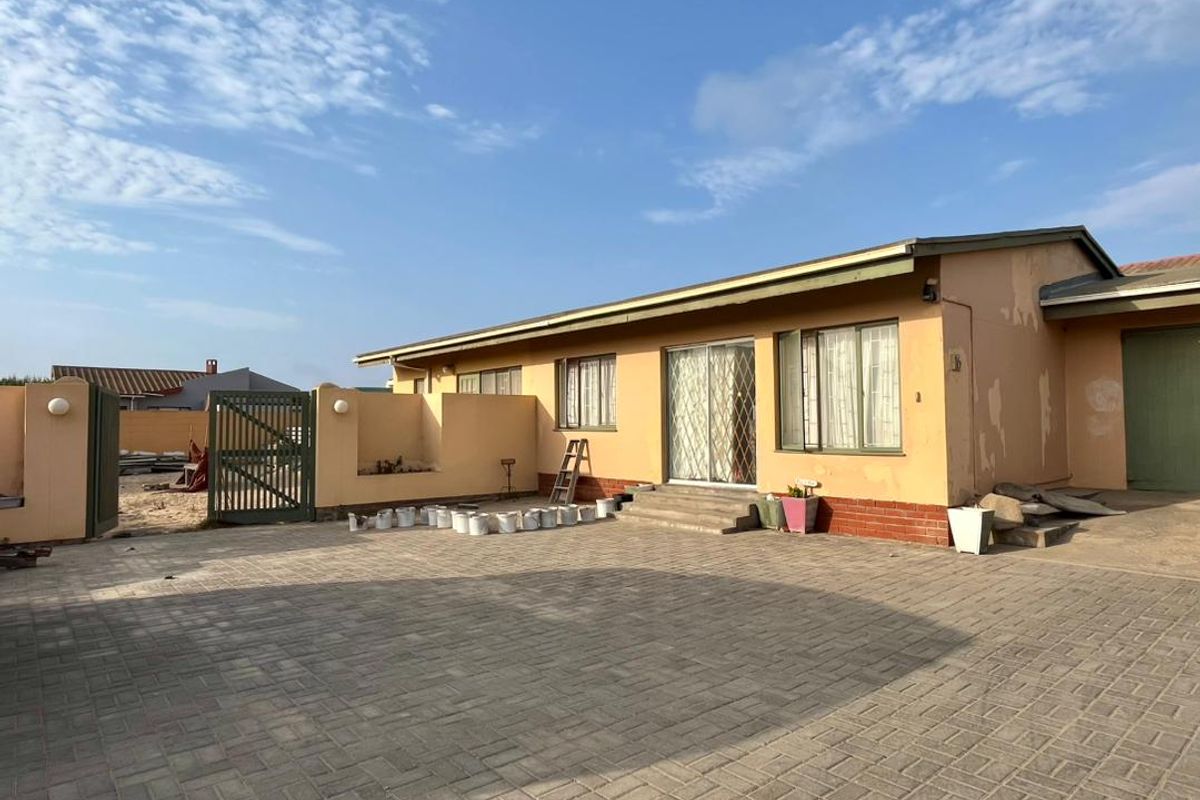 Relaxed coastal living in Vineta, Swakopmund — sunny garden and indoor braai with bar for year-round entertaining; three bedrooms, two bathrooms and three garages.