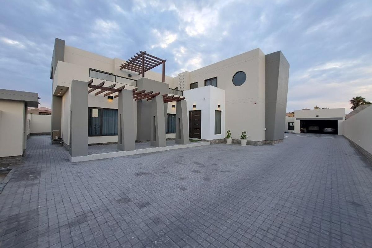 Entertainer's coastal retreat in Meersig, Walvis Bay — one street from the lagoon, featuring an under-roof pool with bar and BBQ. Five bedrooms, five bathrooms and four garages.