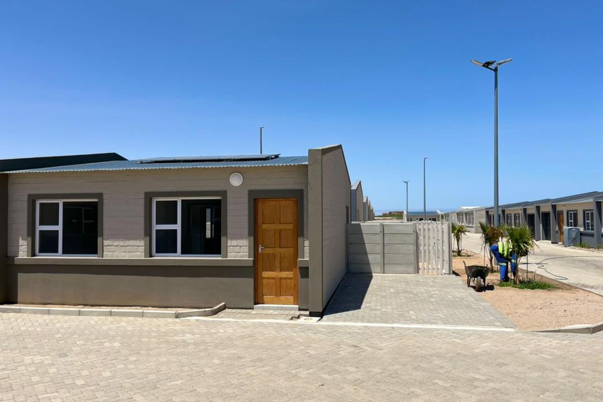 Enjoy central Walvis Bay living in Dunes Estate with low-maintenance indoor-outdoor flow and private courtyard for braais; energy-efficient design, two bedrooms and one bathroom.