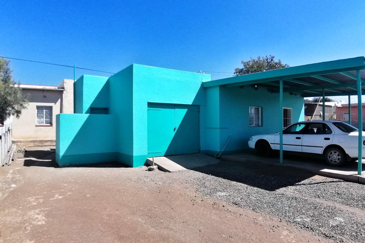 Family-focused living and rental income potential in quiet Keetmanshoop, steps from schools and shops; low-maintenance garden, undercover BBQ and large erf ideal for extra flatlets. Three bedrooms, 1.5 baths, garage.