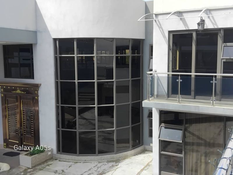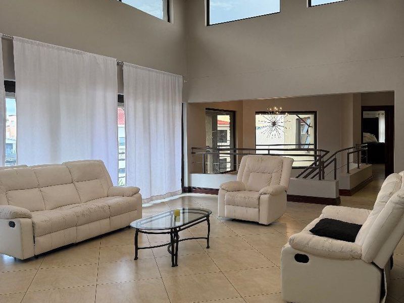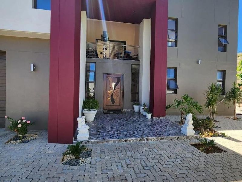 Relax on an upper sundowner deck with city views in Auasblick, minutes from The Grove Mall; double-storey home with pool, modern kitchen, five bedrooms, four baths, triple garage.