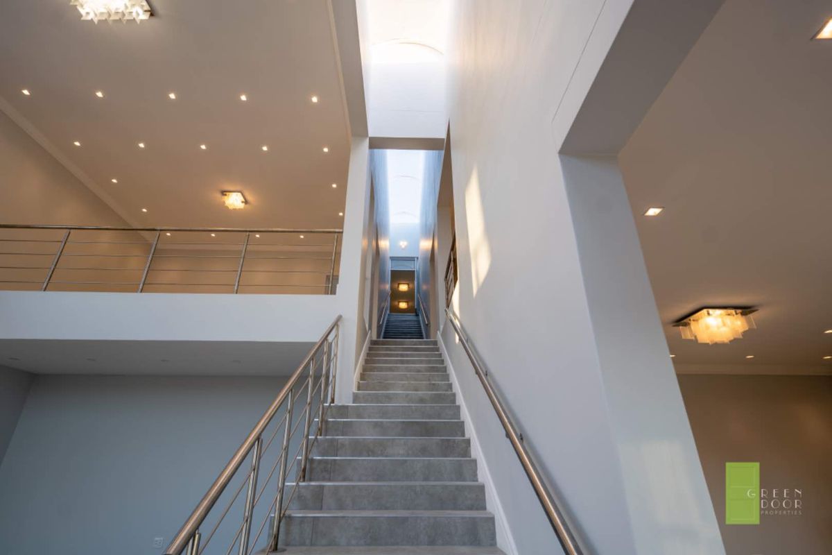 The 1st floor has a double volume lounge, mezzanine family area, study area, 4 bedrooms, 3 bathrooms, kitchen, scullery, and dining area with glass doors leading out onto the lovely rooftop area where you can enjoy the stunning sunrises, sipping your first coffee of the day!