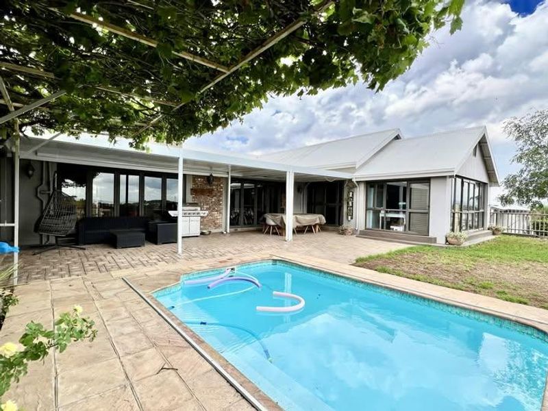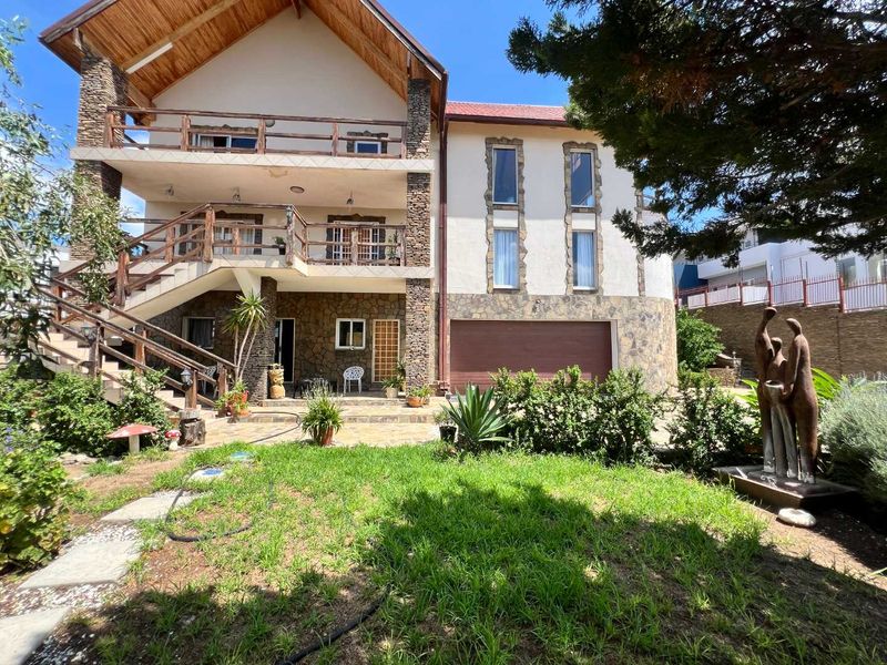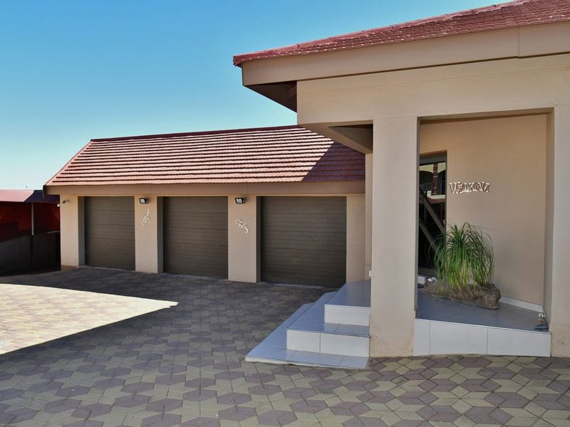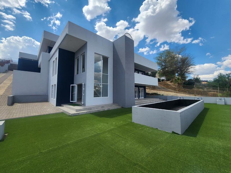 Relaxed family living in Auasblick with elevated views; entertainer's indoor braai for year-round hosting. Eight bedrooms, five bathrooms and three-car garage.