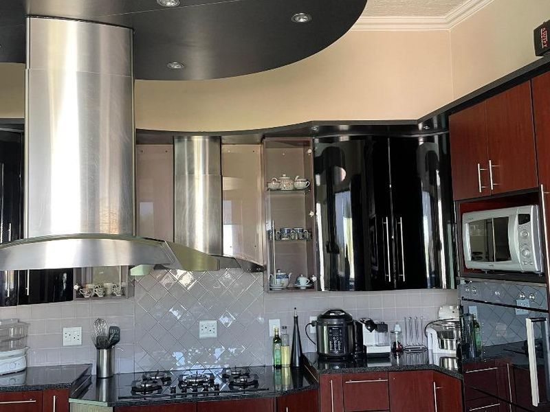 Entertainer's dream in Windhoek’s exclusive suburb, steps from Grove Mall and top schools, offering elevated views, entertainment room with built-in bar — four bedrooms, four bathrooms, triple garage.