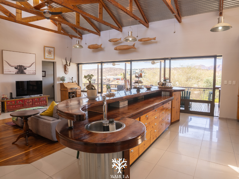 Entertainer's mountainside retreat with sweeping Khomas Mountain views, a trio of pools for every occasion, productive orchard with 30 fruit trees, and four en-suite bedrooms plus three-car garage.