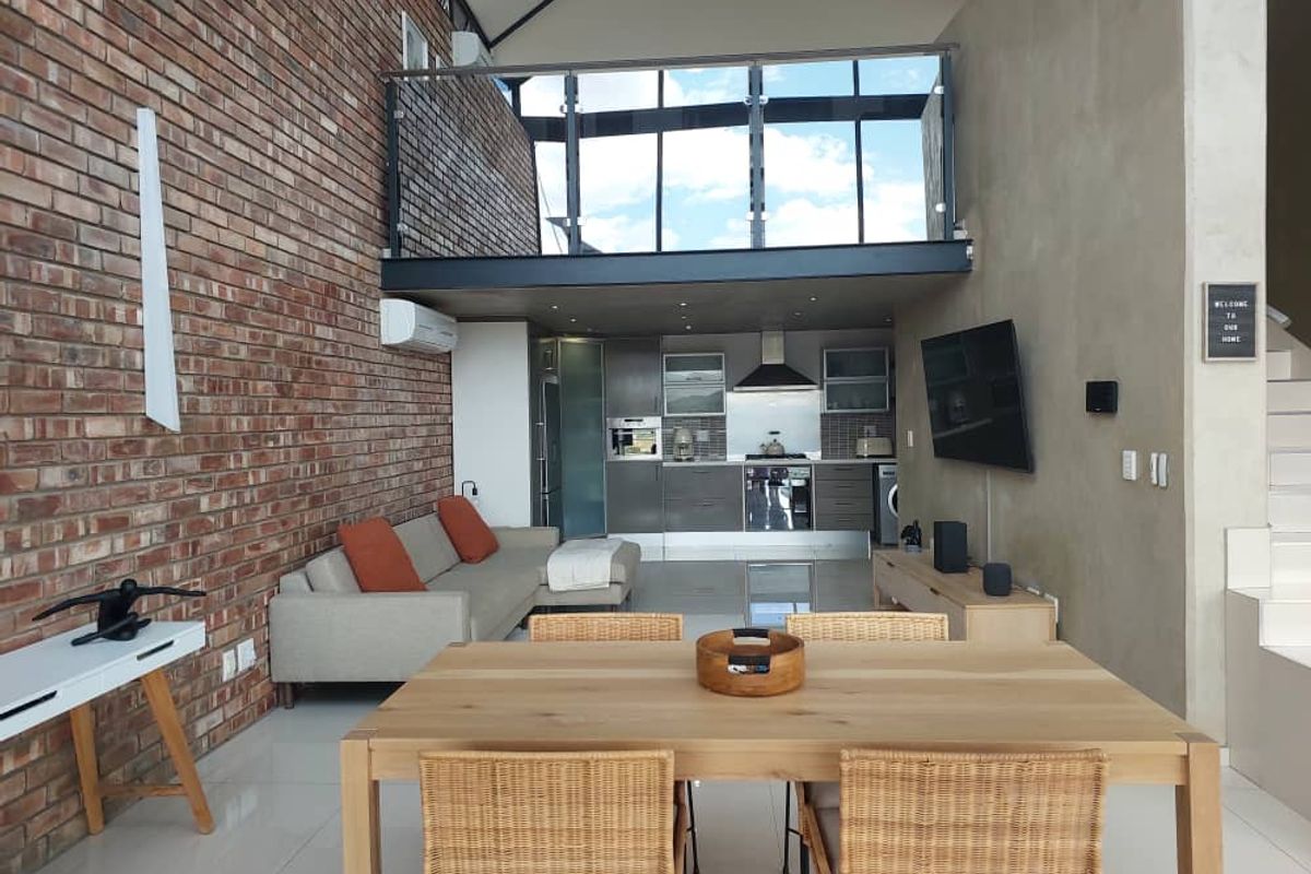 A stunning double-volume lounge-dining room, kitchen with remote control blinds, guest toilet, bedroom en-suite with BIC and blinds, bedroom in loft unit and en-suite bathroom with BIC with blinds. Double car-port garage with automated steel grid doors, Pool pump room with BIC store room / laundry, splash pool, balcony with wooden floor and roof covering and outside barbeque. Alarm, air-conditioning and underfloor heating.