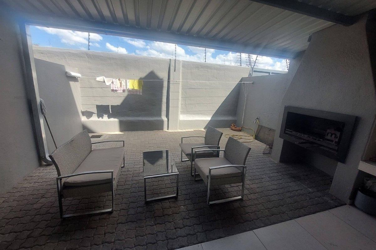 Entertainer's duplex in Le Mont, steps from Avis Dam and Klein Windhoek amenities; private courtyard with covered patio and built-in braai, modern kitchen, two bedrooms, two baths, tandem garage.