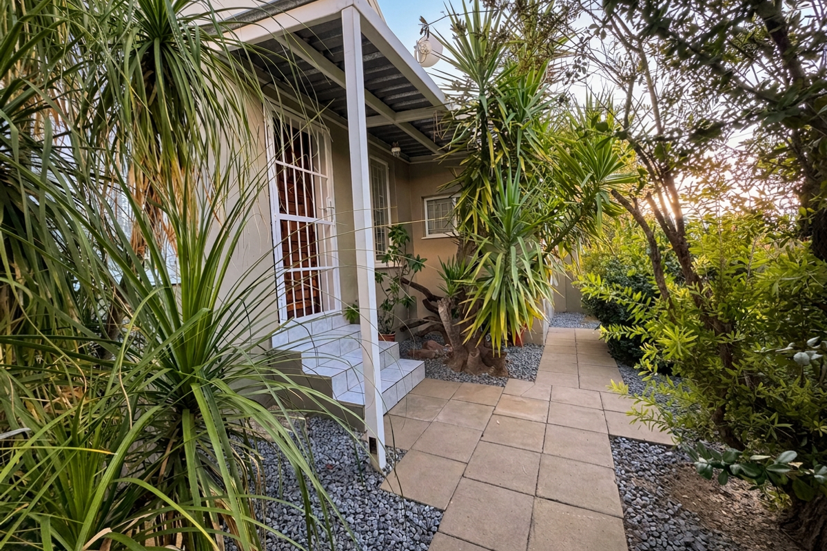 Relaxed family living in sought-after Avis Village, on a peaceful corner stand — large private garden with covered braai for entertaining, plus home office nook; three bedrooms, two baths.