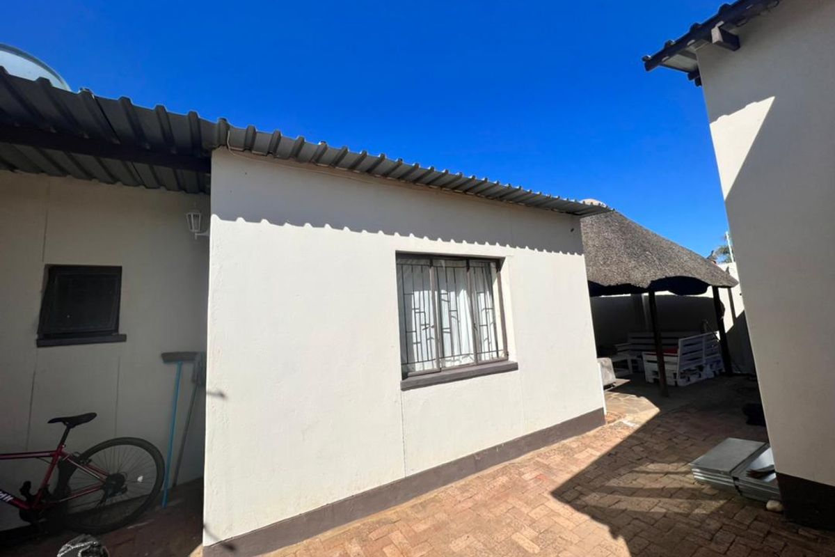 Relaxed family living in Cimbebasia with convenient neighborhood access, open-plan modern kitchen and braai entertainment patio — includes bachelor flat, two bedrooms, two bathrooms and single garage.