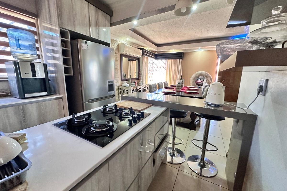 Entertainer's family home in a quiet, family-friendly neighborhood with balcony and paved yard; built-in braai entertainment area, modern kitchen, five bedrooms, three bathrooms, double garage.