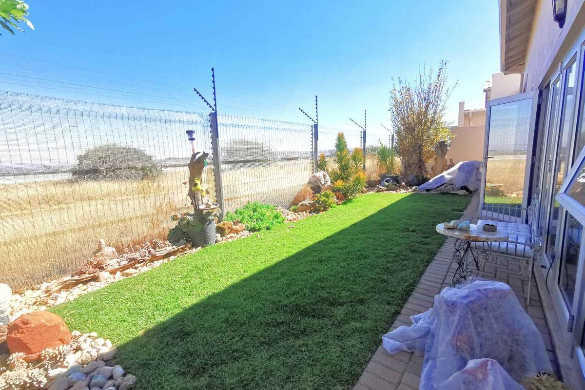 Relaxed retirement living in a secure, upmarket estate 15 minutes from Windhoek, next to Finkenstein Estate — open-plan living with folding doors to BBQ patio; two beds, two baths, double garage.
