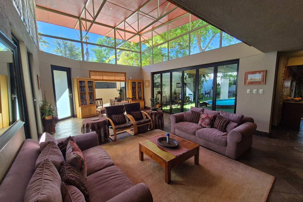 Live-work sanctuary on leafy Klein Windhoek streets with a dedicated consulting suite — ideal for therapists or consultants; five bedrooms, five bathrooms and double garage.