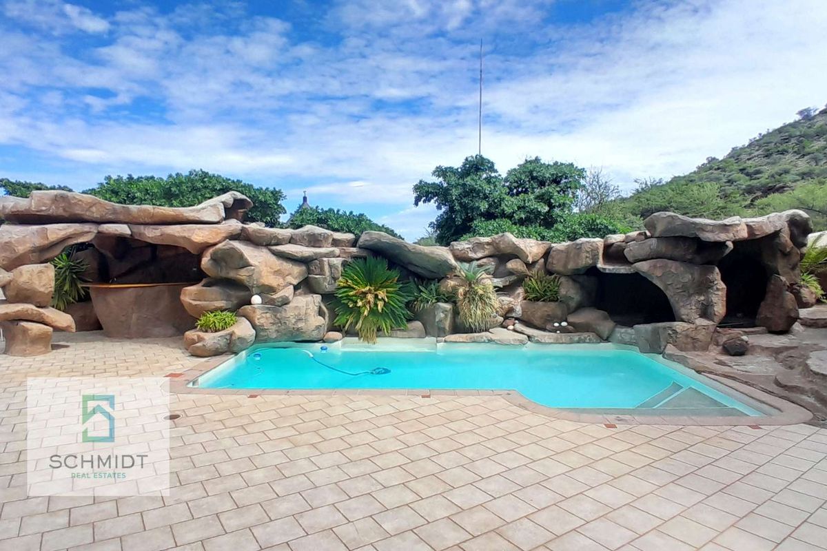 Entertainer's paradise in exclusive Klein Windhoek, offering expansive outdoor living and a lapa with panoramic views — five bedrooms, three baths and four garages.