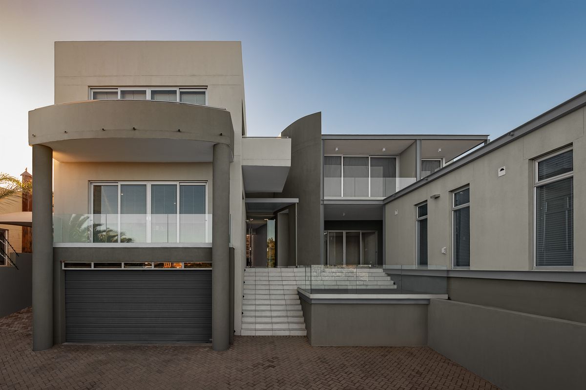 Entertainer's dream in a peaceful family-friendly neighborhood, featuring a lounge with bar, gym and sauna, sunny patio and solar geysers — eight bedrooms, eight bathrooms and single garage.