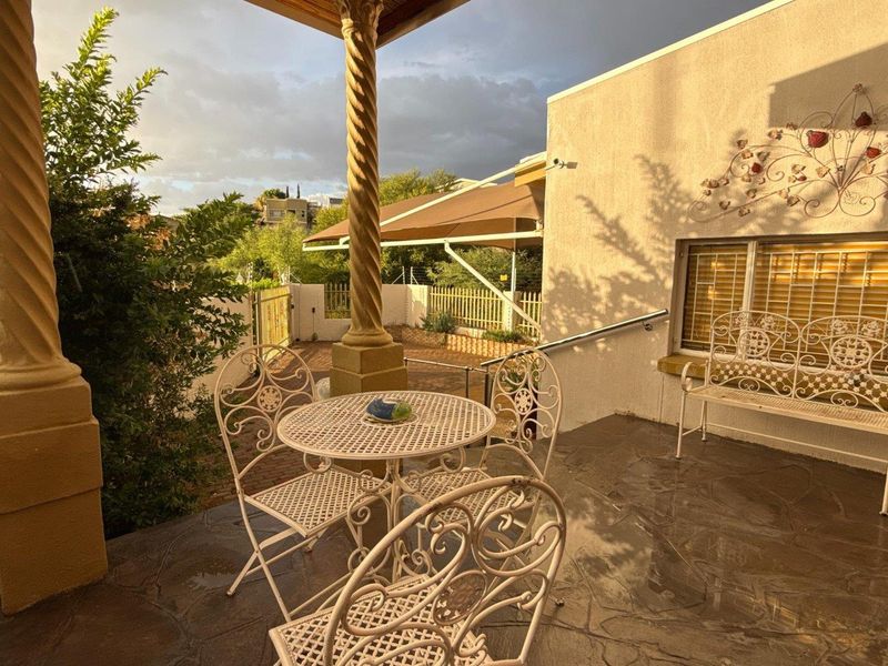 Live elevated on Gamsa Street in Windhoek, enjoying sweeping city views, expansive open-plan entertaining and a self-contained 1‑bed flat — five bedrooms, six baths, two garages.