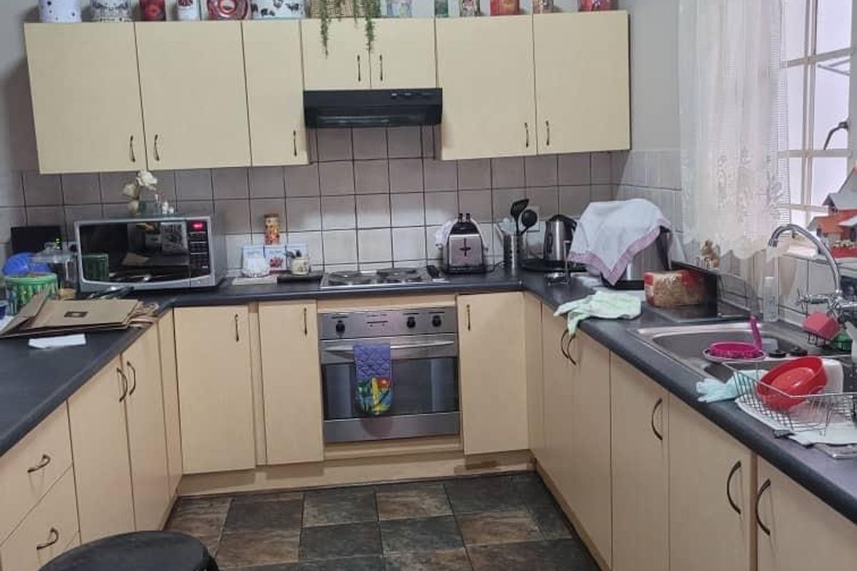 Secure, convenient family living in Kleine Kuppe, steps from Grove Mall and Lady Pohamba Hospital, with a private pet-friendly garden, modern kitchen, three beds, two baths, double garage.