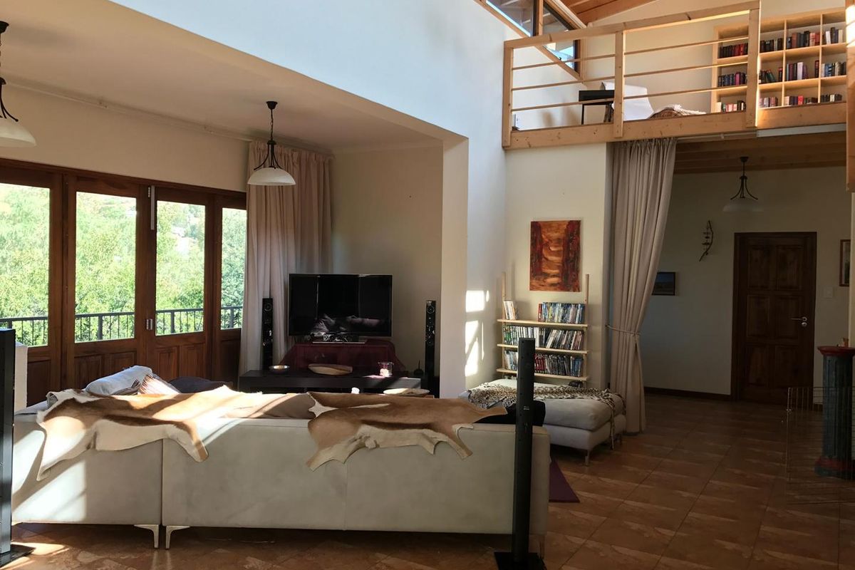 Upmarket family living in Ludwigsdorf with sweeping Auas Mountain views from a 29 m² balcony, German-crafted interiors and modern kitchen; four bedrooms, four bathrooms and double garage.