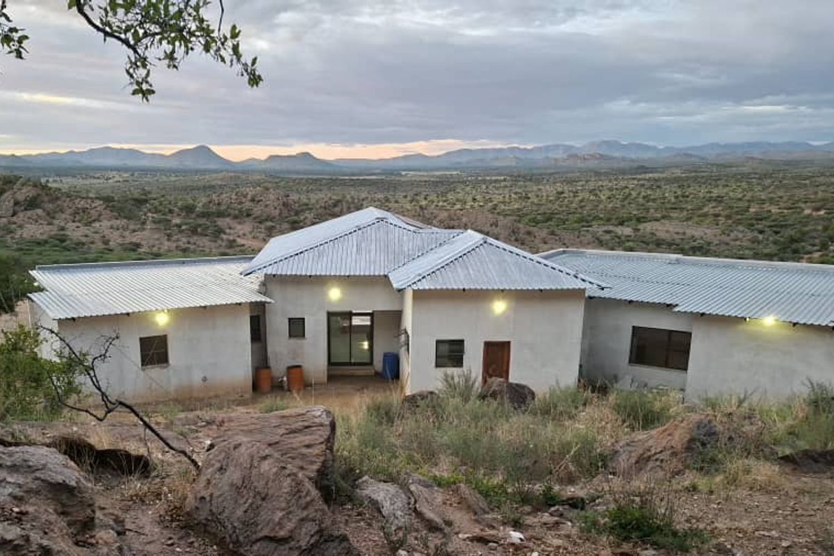 Embrace secluded bush living on 60 hectares, 40 km south of Windhoek near Omeya and Gocheganas Lodge — private boma and large stoep, with a three‑bed, two‑bath homestead.