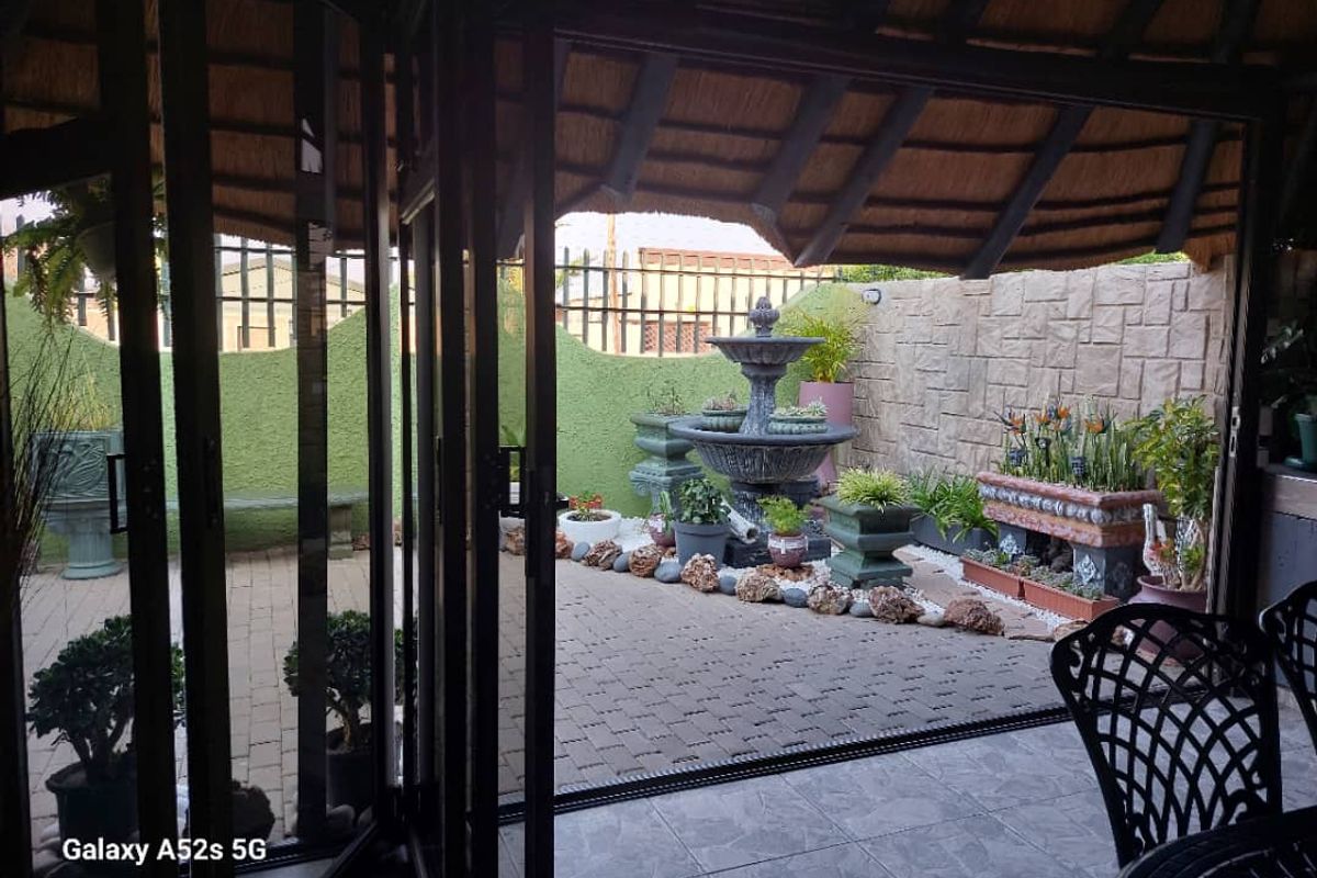 Modern family living in Otjomuise, Windhoek with spacious indoor-outdoor flow and secure, private yard — sliding door to entertainment area, three bedrooms, one bathroom, double garage.