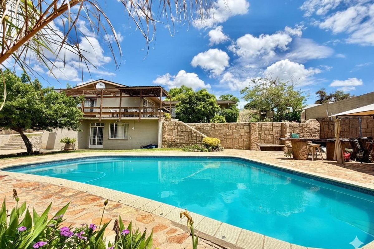 Relaxed family living with expansive outdoor space in Old Pionierspark, close to amenities — huge child-friendly 1,409 m² erf with pool, verandah and flat; four bedrooms, double garage.