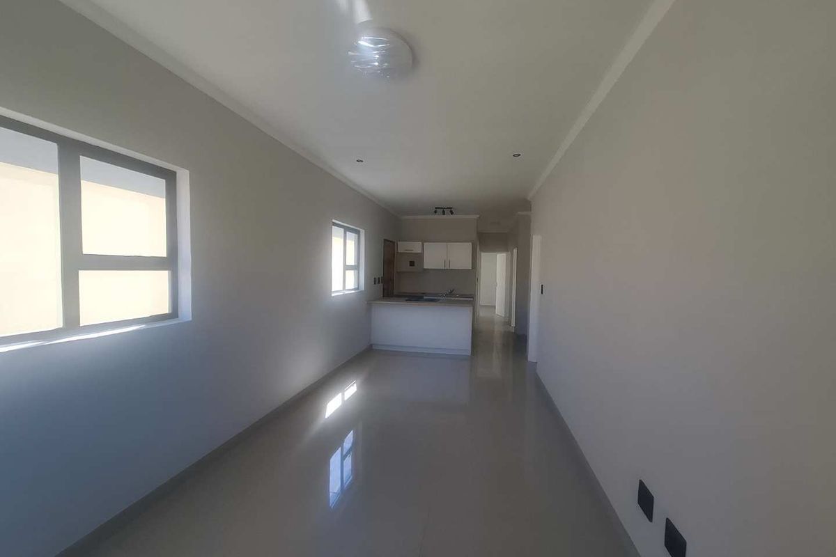 Enjoy easy contemporary living in a peaceful sectional-title complex, close to local amenities; brand-new, move-in-ready three-bedroom home with open-plan kitchen and single garage.