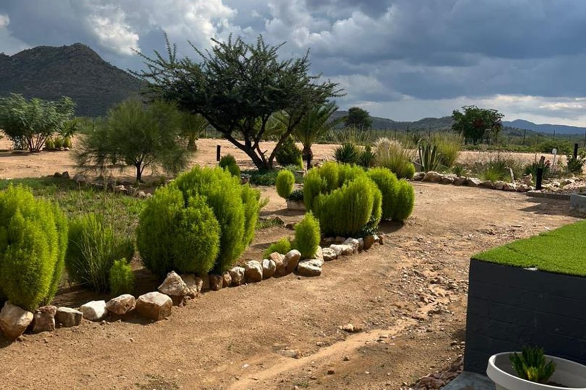 Embrace self-sufficient country living 35km south of Windhoek in Kransneus opposite Omeya — 2.8ha, off-grid solar and borehole, pool and separate guest house, three bedrooms.