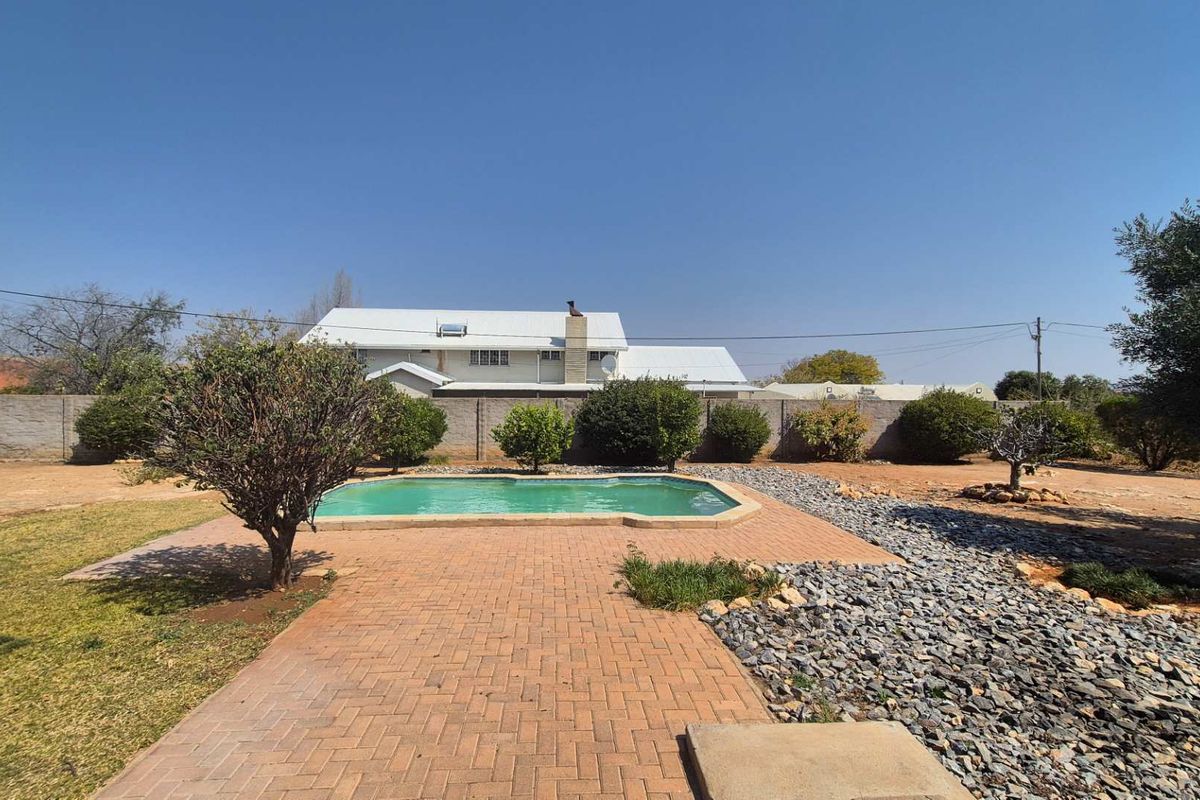 Enjoy rustic Uis living with Uis-brick insulation, huge yard and pool plus a BBQ bar opening to the garden — three bedrooms, two bathrooms and single garage.