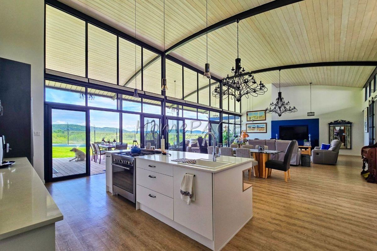 * Attractive, WELL APPOINTED, two-toned kitchen, with stone tops and breakfast nook, open plan with living area