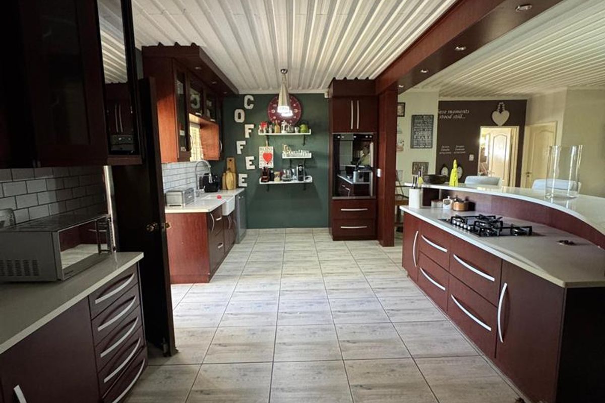 Entertainer's dream in Outjo: relaxed indoor-outdoor living with covered braai and chef's kitchen, lush fruit trees, top security, plus three bedrooms, two bathrooms and double garage.