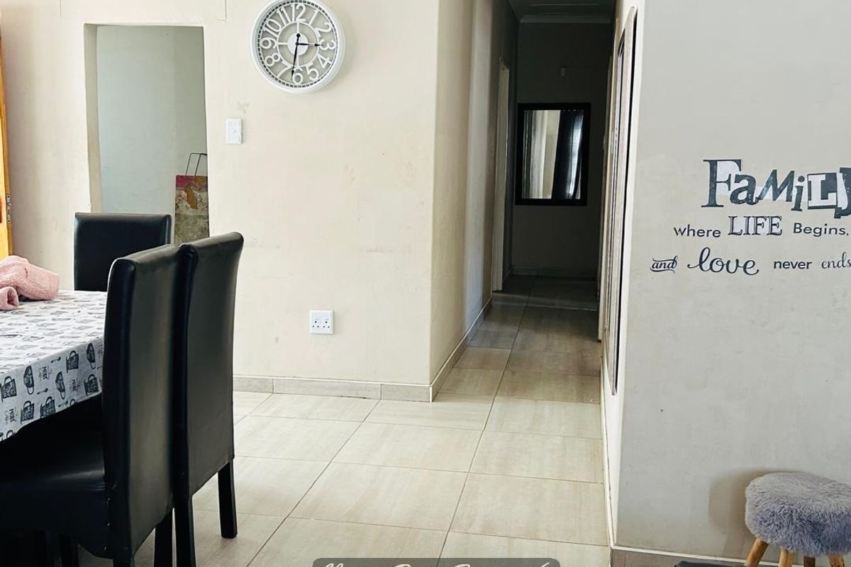Comfortable family living in the heart of Okahandja, featuring a secure boundary wall and alarm system. Three bedrooms, two bathrooms, and an open-plan kitchen for easy family flow.