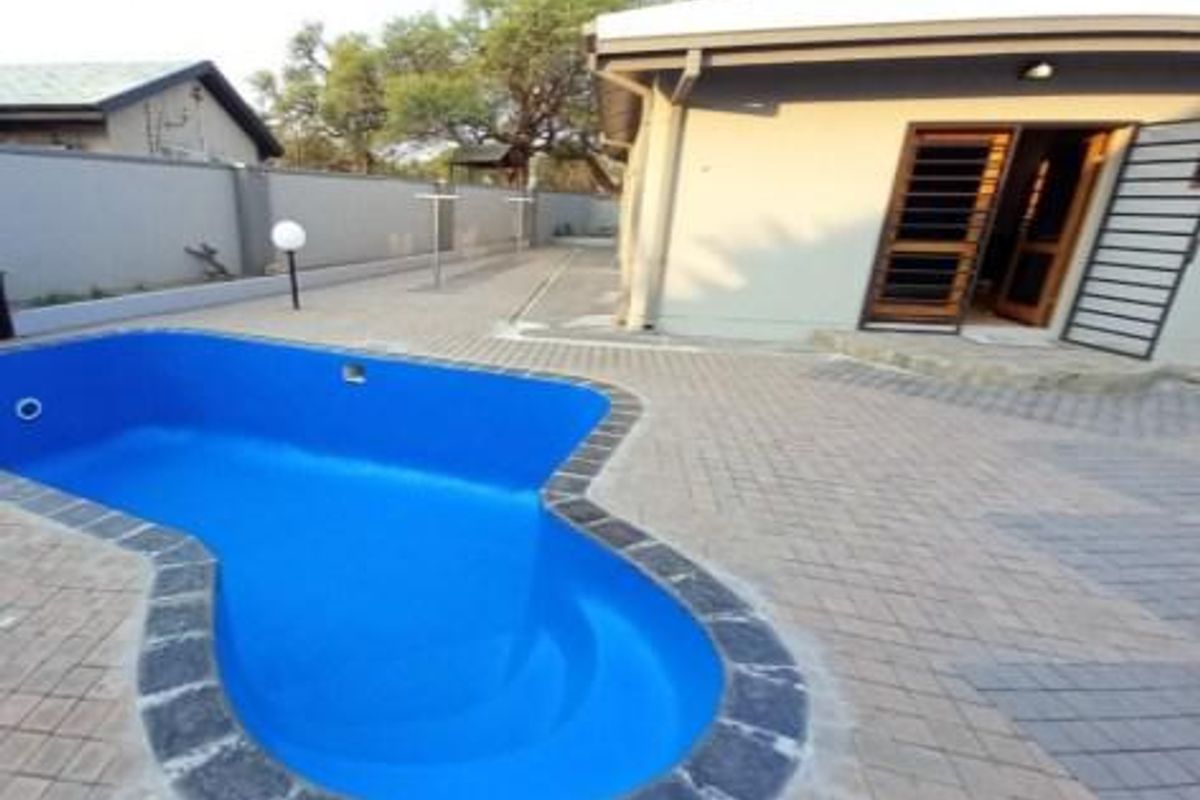 4-bedroom house in Okahandja with outdoor rooms, garage, carports, swimming pool, and entertainment area.