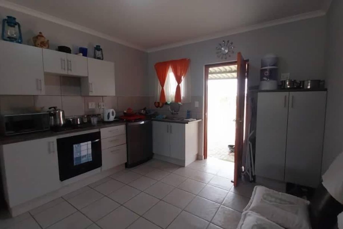 Relaxed suburban living in Osona Village, Okahandja — sunlit lounge extends to a covered stoep and private garden, neat kitchen, two bedrooms and single garage.