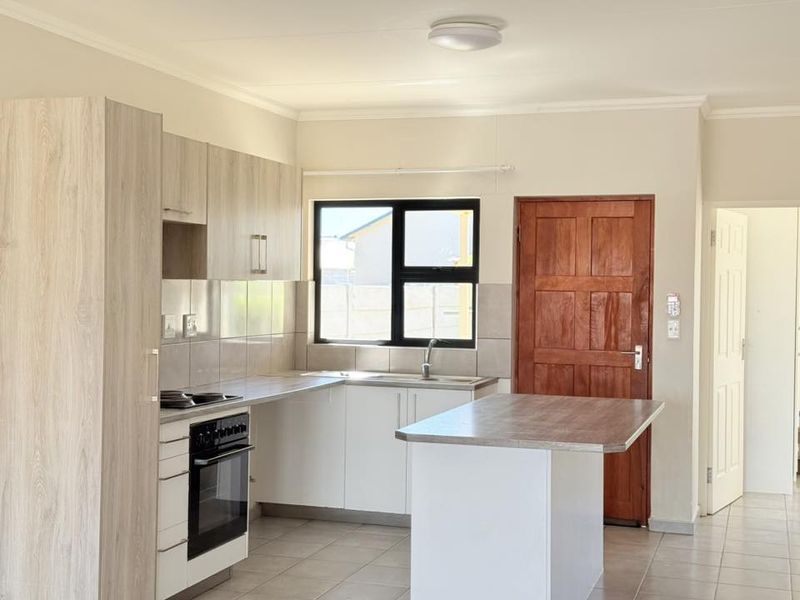 Enjoy relaxed suburban living in Ext 6, Okahandja with an open-plan kitchen and private paved courtyard; remote-monitored CCTV, fiber internet, two bedrooms, one bath and double garage.