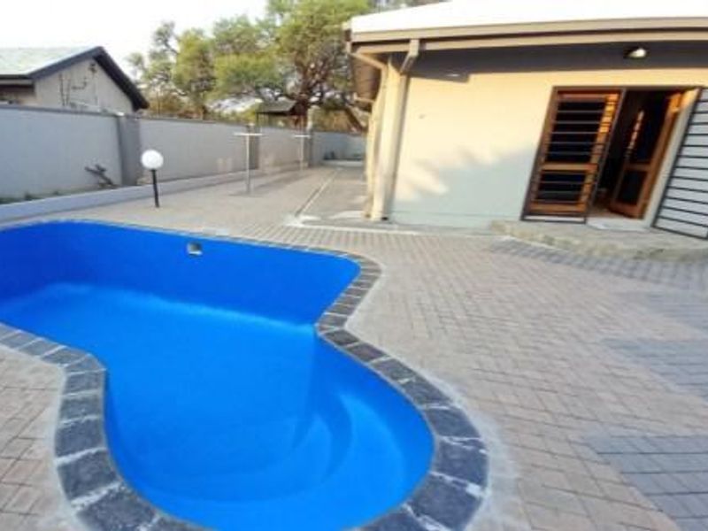 4-bedroom house in Okahandja with outdoor rooms, garage, carports, swimming pool, and entertainment area.