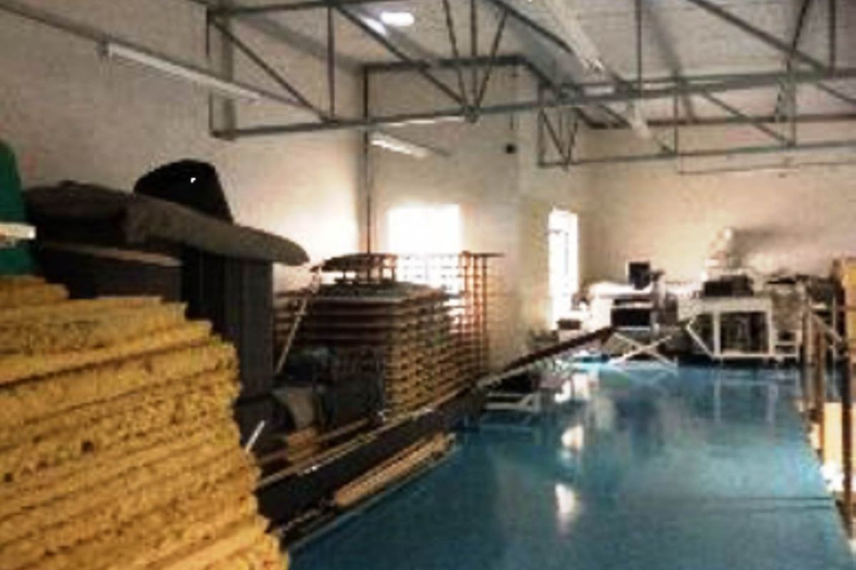 Warehouse for sale with offices, mezzanine, reception, kitchenettes, and toilets. Industrial zoning and electric fence included.