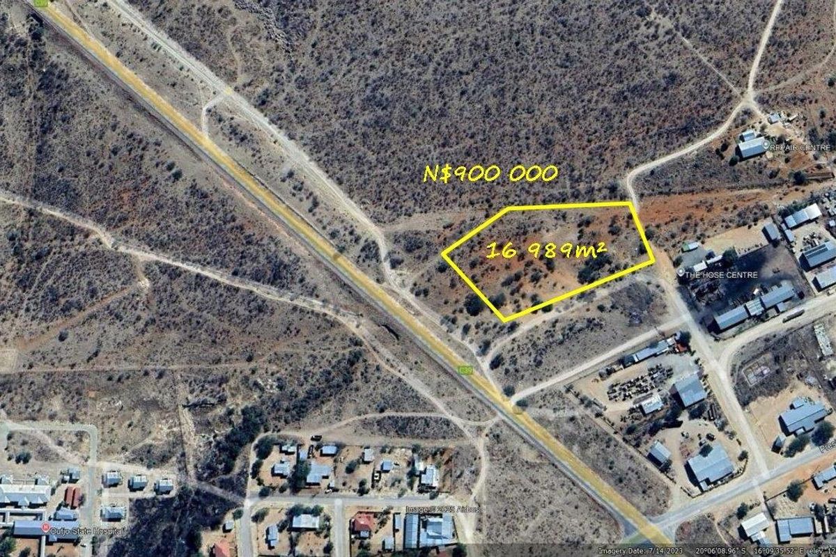 16,989 m² land for sale at N$900,000; adjacent 9,616 m² erf available for N$530,000.