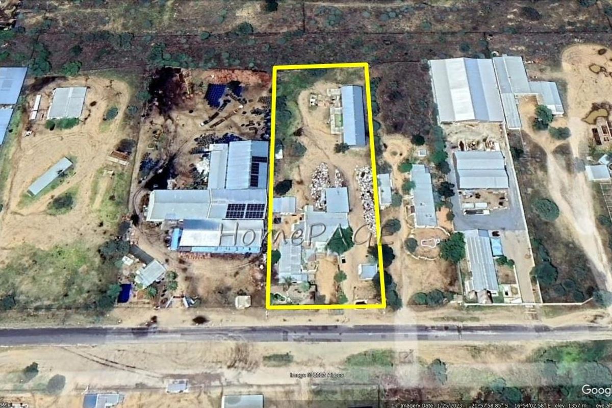 Spacious property with home, flat, workshops, warehouses, and office; ideal for business oversight. Includes pool, security features. Price: N$6,825,000.