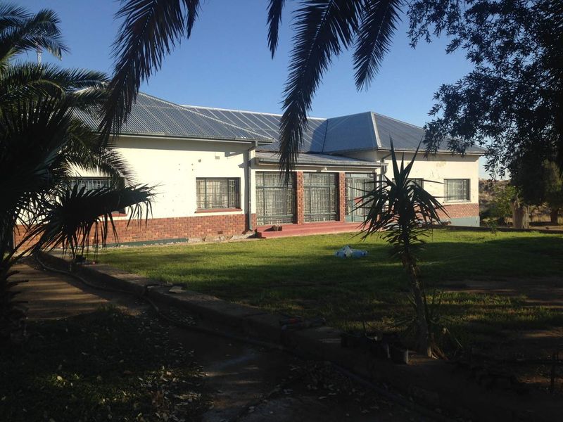 6 bedrooms, 2 bathrooms, 4 garages on 20400 m² land with boreholes, dam, and extensive garden.