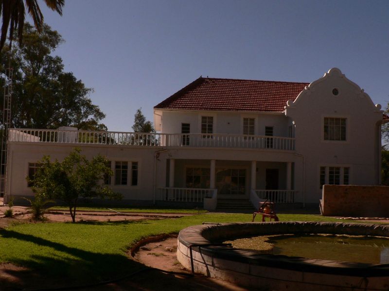 Off-grid ranch lifestyle in far-south Namibia near Ariamsvlei and Karasburg, close to the South African border, centered around a perennial fountain — three-bedroom main house with double garage.