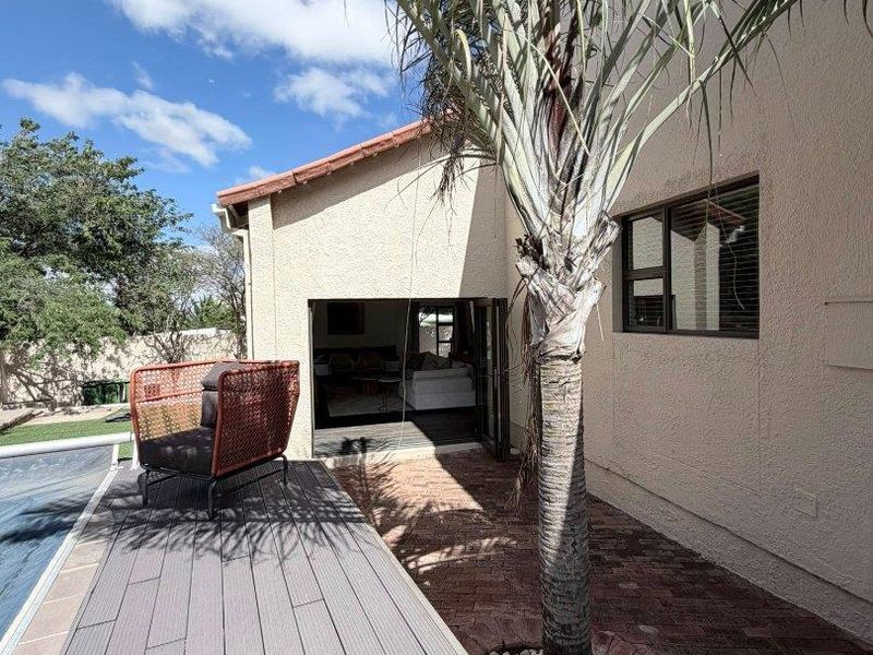 Entertain effortlessly in central Oranjemund with a lush irrigated garden, 6x3 pool and built-in braai/pizza oven — renovated open-plan living with three bedrooms, 1.5 baths and triple garages.