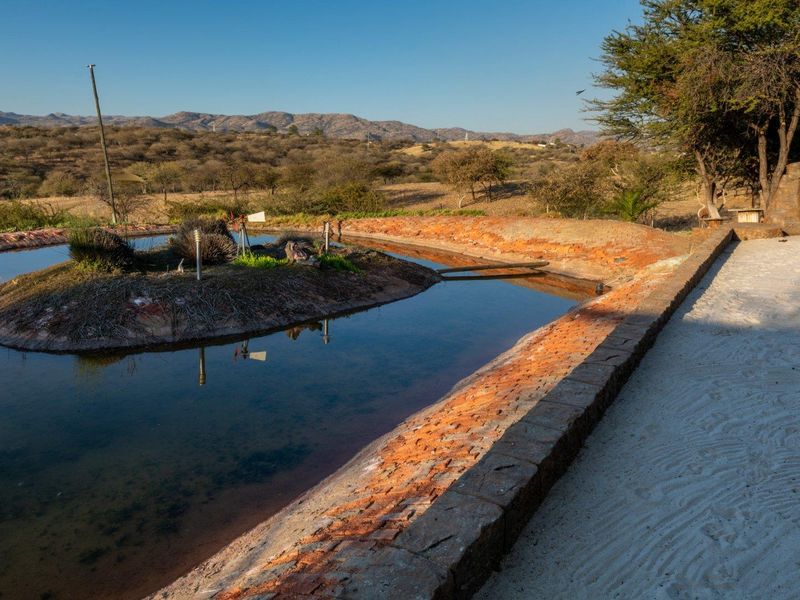 Escape to a private hilltop smallholding just outside Windhoek, offering wide views, free-roaming wildlife, aviary-filled gardens and guest chalets — main three-bedroom, three-bath residence with solar and boreholes.