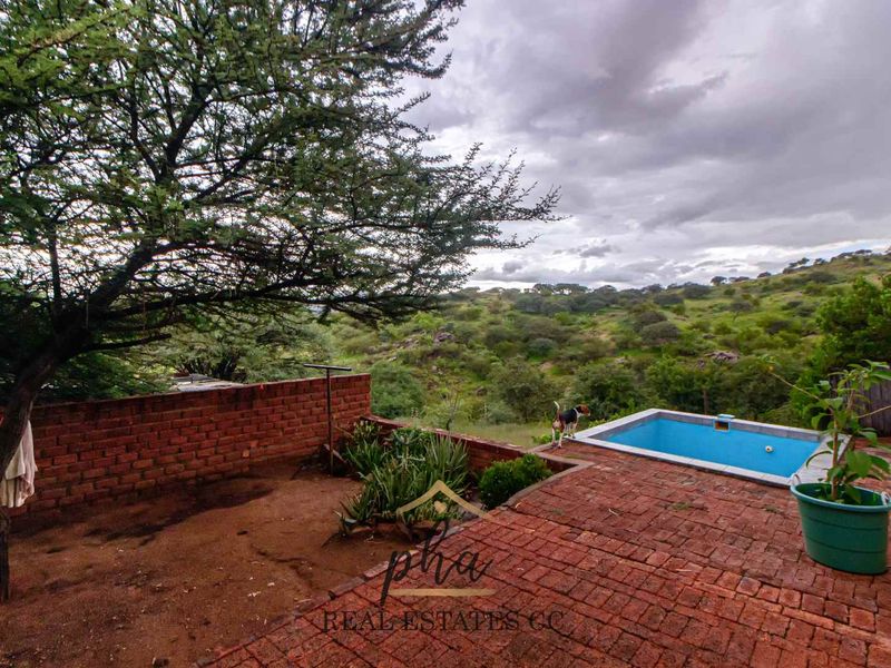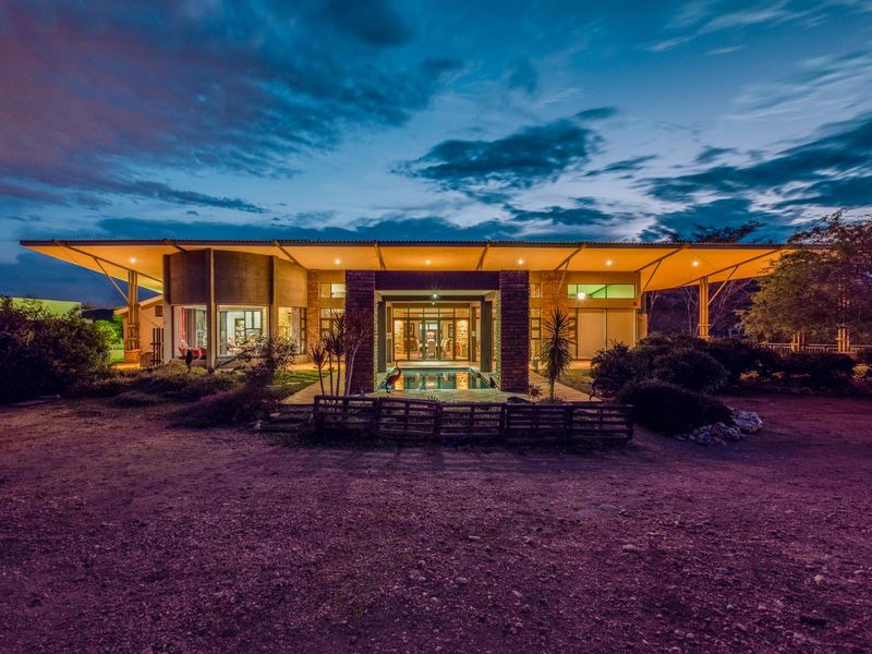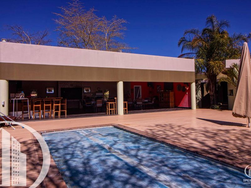 Luxurious 6-bedroom estate near Windhoek with modern amenities, separate flat, staff house, garages, pool, and outdoor entertainment area.