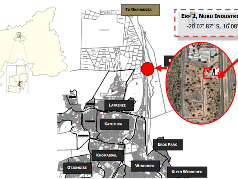 A 6.2205-hectare plot zoned for light industrial use is for sale, with water available and electricity application required through Nampower.