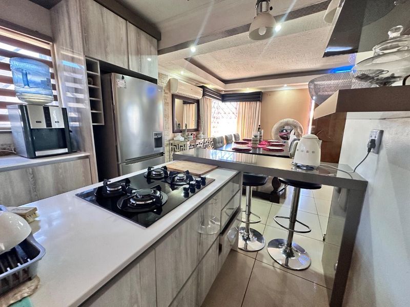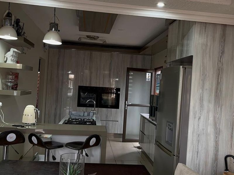 Entertainer's family home in a quiet, family-friendly neighborhood with balcony and paved yard; built-in braai entertainment area, modern kitchen, five bedrooms, three bathrooms, double garage.